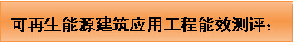 可再生能源建筑應(yīng)用工程能效測評是指對地源熱泵系統(tǒng)、太陽能熱利用系統(tǒng)、太陽能光伏系統(tǒng)進(jìn)行指標(biāo)評價、性能合格判定和性能分級評價,以及節(jié)能效益、環(huán)境效益、經(jīng)濟(jì)效益評估。