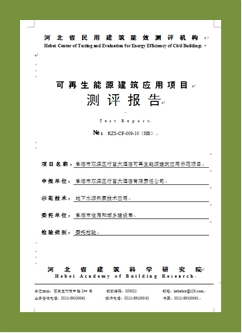 現(xiàn)已開展承德、南宮、寧晉、大名、平泉、任縣、清河、安平等多個國家級可再生能源建筑應(yīng)用示范項目、示范縣市的300余項工程的測評,測評技術(shù)在國內(nèi)處于領(lǐng)先水平。
