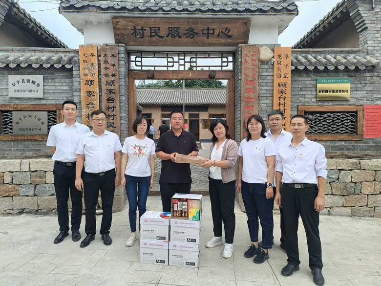 到達顧家臺村黨員教育培訓基地后,冀科公司黨支部來到顧家臺村委會,向其捐贈打印紙、檔案袋等辦公用品。隨后,干部職工通過“以購代捐”和“以買代幫”等形式,購買幫扶村農產品,為鄉村振興工作貢獻一份力量。