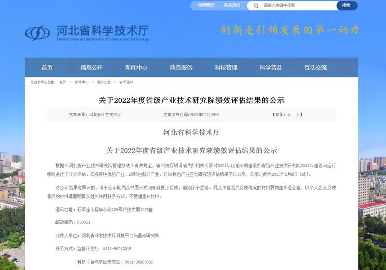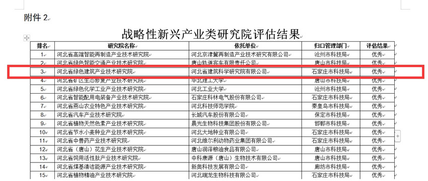 我公司建設運行的“河北省綠色建筑產業技術研究院”榮獲省級產業技術研究院績效評估優秀等次