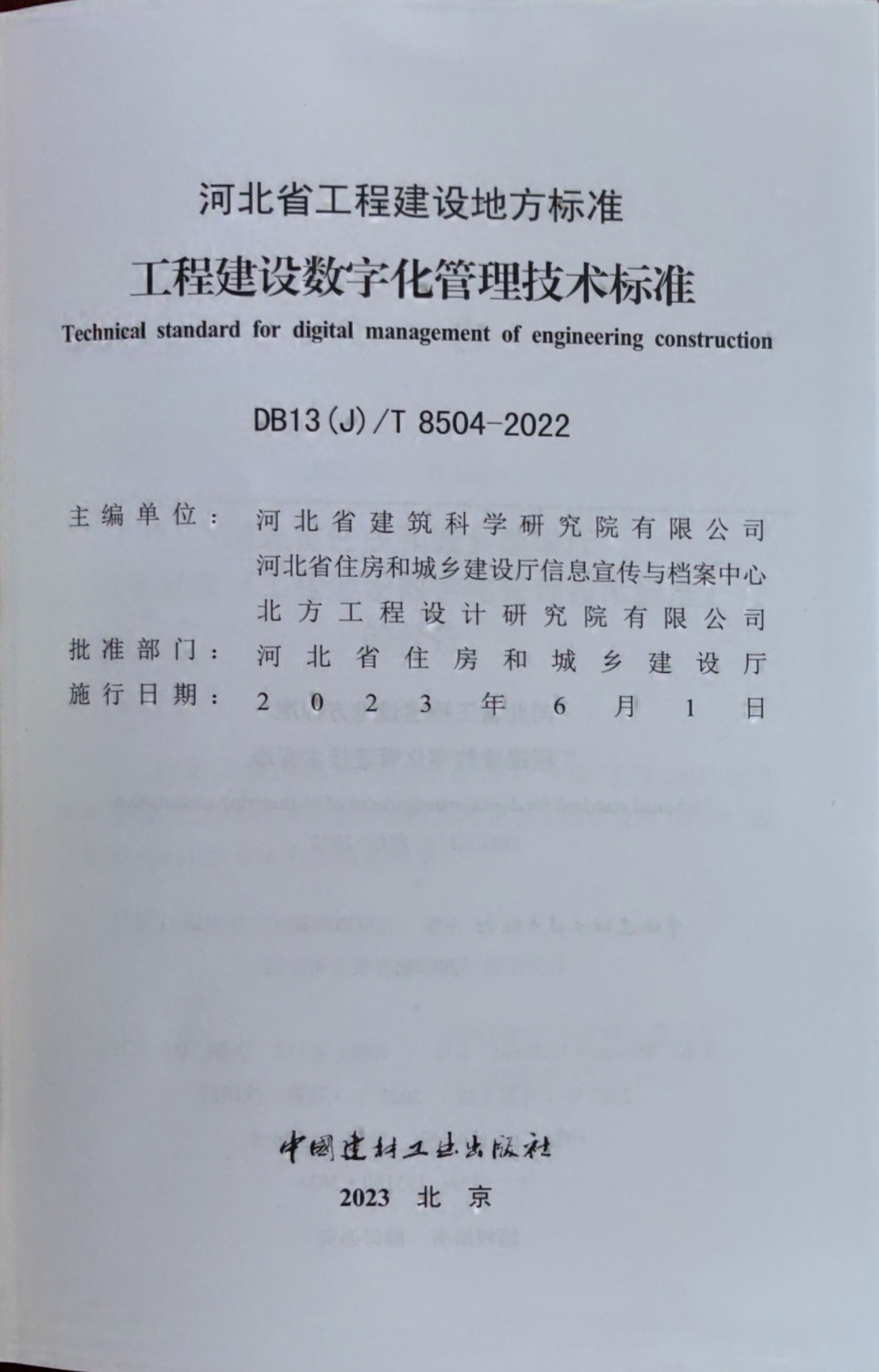 近日,由河北省建筑科學研究院有限公司、河北省住房和城鄉(xiāng)建設廳信息宣傳與檔案中心和北方工程設計研究院有限公司共同主編的《工程建設數(shù)字化管理技術標準》(DB13(J)/T8504-2022)已完成印刷,將于2023年6月1日起實施。