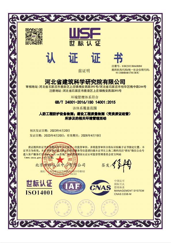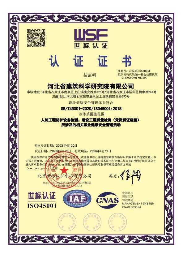 河北省建筑科學(xué)研究院有限公司認證證書2