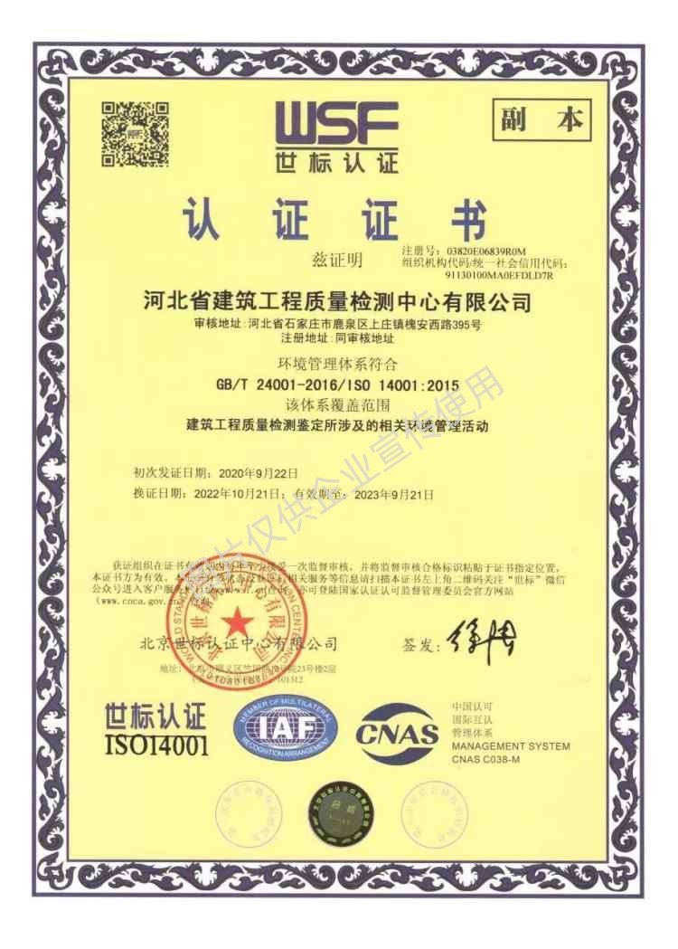 檢測中心認證證書